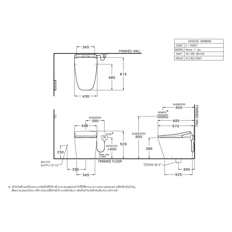 Thông số kỹ thuật bồn cầu thông minh COTTO VERZO C10207